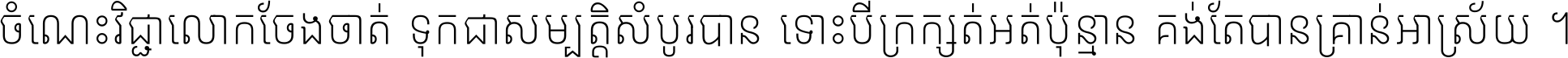 ចំណេះ​វិជ្ជា​លោក​ចែង​ចាត់ ទុក​ជា​សម្បត្តិ​សំបូរ​បាន ទោះ​បី​ក្រក្សត់​អត់​ប៉ុន្មាន គង់​តែ​បាន​គ្រាន់​អាស្រ័យ ។