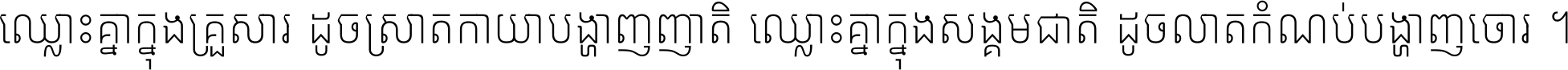 ឈ្លោះ​គ្នា​ក្នុង​គ្រួសារ ដូច​ស្រាត​កាយា​បង្ហាញ​ញាតិ ឈ្លោះគ្នាក្នុង​សង្គមជាតិ ដូច​លាត​កំណប់​បង្ហាញ​ចោរ ។