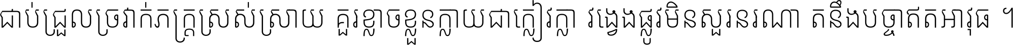 ចង​អ្វី​មិន​ជាប់​ស្មើ​សង្សារ ការ​អ្វី​មិន​ស្មើ​ការ​ប្រតិបត្តិ ស្ងាត់​អ្វី​មិន​ស្មើ​​ចិត្ត​អរហត្ត​ កាច​អ្វី​មិន​ស្មើ​ចិត្ត​ពាលា ។