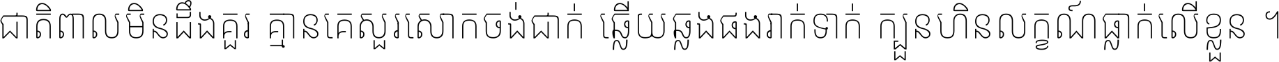 ជាតិ​ពាល​មិន​ដឹង​គួរ គ្មាន​គេ​សួរ​សោក​ចង់​ជាក់ ឆ្លើយ​ឆ្លង​ផង​រាក់​ទាក់​ ក្បួន​ហិន​លក្ខណ៍​ធ្លាក់​លើ​ខ្លួន ។