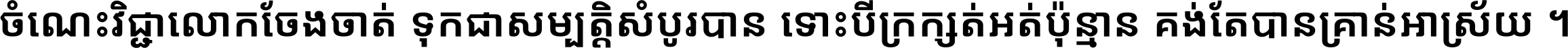 ចំណេះ​វិជ្ជា​លោក​ចែង​ចាត់ ទុក​ជា​សម្បត្តិ​សំបូរ​បាន ទោះ​បី​ក្រក្សត់​អត់​ប៉ុន្មាន គង់​តែ​បាន​គ្រាន់​អាស្រ័យ ។