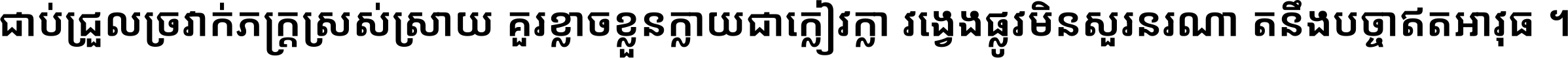 ចង​អ្វី​មិន​ជាប់​ស្មើ​សង្សារ ការ​អ្វី​មិន​ស្មើ​ការ​ប្រតិបត្តិ ស្ងាត់​អ្វី​មិន​ស្មើ​​ចិត្ត​អរហត្ត​ កាច​អ្វី​មិន​ស្មើ​ចិត្ត​ពាលា ។