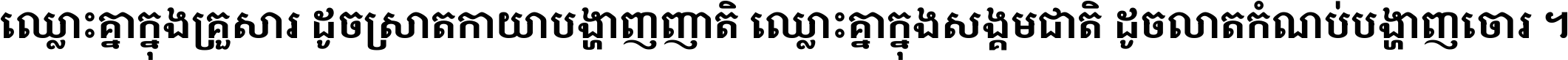 ឈ្លោះ​គ្នា​ក្នុង​គ្រួសារ ដូច​ស្រាត​កាយា​បង្ហាញ​ញាតិ ឈ្លោះគ្នាក្នុង​សង្គមជាតិ ដូច​លាត​កំណប់​បង្ហាញ​ចោរ ។