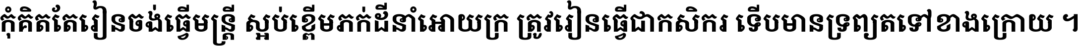 កុំ​គិត​តែ​រៀន​ចង់ធ្វើ​មន្ត្រី ស្អប់​ខ្ពើម​ភក់ដី​នាំអោយ​ក្រ ត្រូវ​រៀន​ធ្វើ​ជា​កសិករ ទើប​មានទ្រព្យ​ត​ទៅ​ខាង​ក្រោយ ។