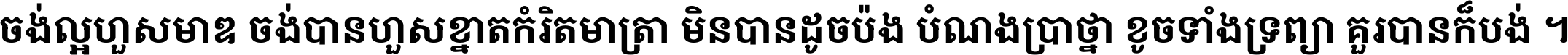 ចង់​ល្អ​ហួស​មាឌ ចង់​បាន​ហួស​ខ្នាត​កំរិត​មាត្រា មិន​បាន​ដូច​ប៉ង បំណង​ប្រាថ្នា ខូច​ទាំងទ្រព្យា គួរ​បាន​ក៏បង់ ។