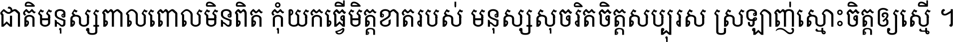 ជាតិ​មនុស្ស​ពាល​ពោល​មិន​ពិត កុំ​យក​ធ្វើ​មិត្ត​ខាត​របស់ មនុស្ស​សុចរិត​ចិត្ត​សប្បុរស ស្រឡាញ់​ស្មោះ​ចិត្ត​ឲ្យ​ស្មើ ។