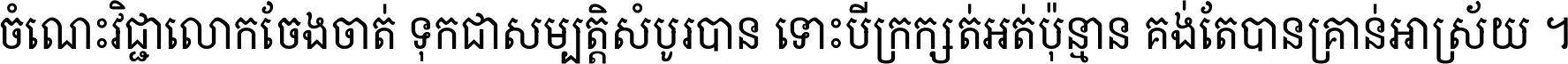 ចំណេះ​វិជ្ជា​លោក​ចែង​ចាត់ ទុក​ជា​សម្បត្តិ​សំបូរ​បាន ទោះ​បី​ក្រក្សត់​អត់​ប៉ុន្មាន គង់​តែ​បាន​គ្រាន់​អាស្រ័យ ។