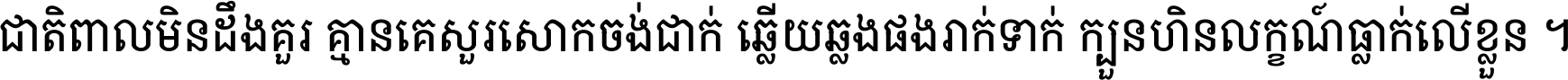 ជាតិ​ពាល​មិន​ដឹង​គួរ គ្មាន​គេ​សួរ​សោក​ចង់​ជាក់ ឆ្លើយ​ឆ្លង​ផង​រាក់​ទាក់​ ក្បួន​ហិន​លក្ខណ៍​ធ្លាក់​លើ​ខ្លួន ។