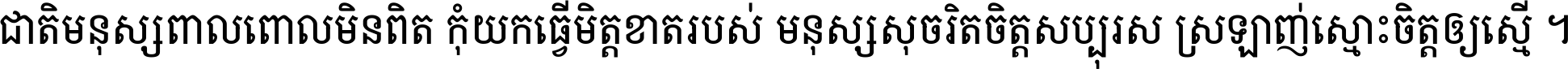 ជាតិ​មនុស្ស​ពាល​ពោល​មិន​ពិត កុំ​យក​ធ្វើ​មិត្ត​ខាត​របស់ មនុស្ស​សុចរិត​ចិត្ត​សប្បុរស ស្រឡាញ់​ស្មោះ​ចិត្ត​ឲ្យ​ស្មើ ។