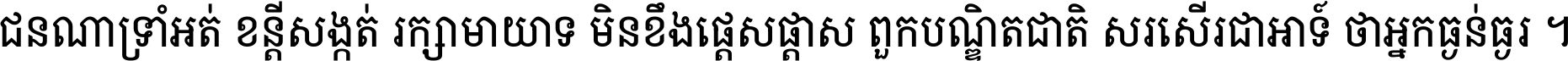 ជនណា​ទ្រាំអត់ ខន្តី​សង្កត់ រក្សា​មាយាទ មិន​ខឹង​ផ្ដេសផ្ដាស ពួក​បណ្ឌិតជាតិ សរសើរ​ជា​អាទ៍ ថា​អ្នក​ធ្ងន់​ធ្ងរ ។