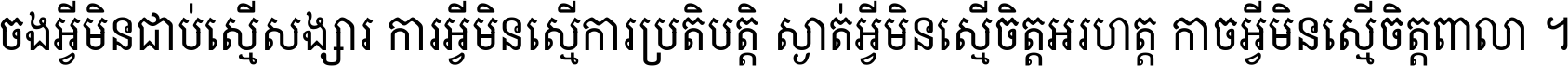 ចង​អ្វី​មិន​ជាប់​ស្មើ​សង្សារ ការ​អ្វី​មិន​ស្មើ​ការ​ប្រតិបត្តិ ស្ងាត់​អ្វី​មិន​ស្មើ​​ចិត្ត​អរហត្ត​ កាច​អ្វី​មិន​ស្មើ​ចិត្ត​ពាលា ។