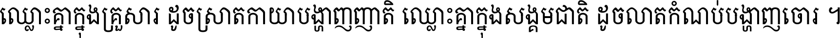 ឈ្លោះ​គ្នា​ក្នុង​គ្រួសារ ដូច​ស្រាត​កាយា​បង្ហាញ​ញាតិ ឈ្លោះគ្នាក្នុង​សង្គមជាតិ ដូច​លាត​កំណប់​បង្ហាញ​ចោរ ។