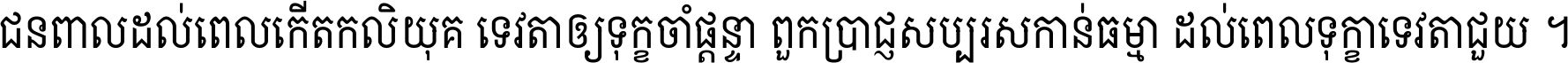 ជនពាល​ដល់​ពេល​កើត​កលិយុគ ទេវតា​ឲ្យ​ទុក្ខ​ចាំ​ផ្ដន្ទា ពួក​ប្រាជ្ញ​សប្បរស​កាន់​ធម្មា ដល់​ពេល​ទុក្ខា​ទេវតា​ជួយ ។