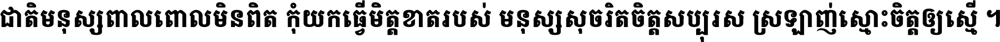 ជាតិ​មនុស្ស​ពាល​ពោល​មិន​ពិត កុំ​យក​ធ្វើ​មិត្ត​ខាត​របស់ មនុស្ស​សុចរិត​ចិត្ត​សប្បុរស ស្រឡាញ់​ស្មោះ​ចិត្ត​ឲ្យ​ស្មើ ។