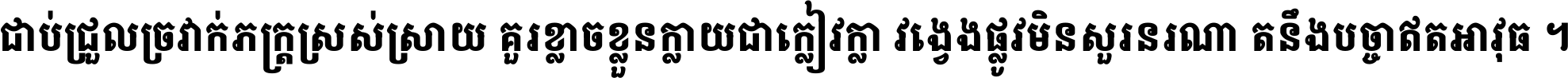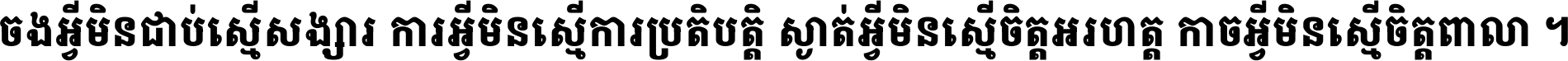 ចង​អ្វី​មិន​ជាប់​ស្មើ​សង្សារ ការ​អ្វី​មិន​ស្មើ​ការ​ប្រតិបត្តិ ស្ងាត់​អ្វី​មិន​ស្មើ​​ចិត្ត​អរហត្ត​ កាច​អ្វី​មិន​ស្មើ​ចិត្ត​ពាលា ។