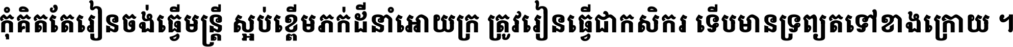 កុំ​គិត​តែ​រៀន​ចង់ធ្វើ​មន្ត្រី ស្អប់​ខ្ពើម​ភក់ដី​នាំអោយ​ក្រ ត្រូវ​រៀន​ធ្វើ​ជា​កសិករ ទើប​មានទ្រព្យ​ត​ទៅ​ខាង​ក្រោយ ។