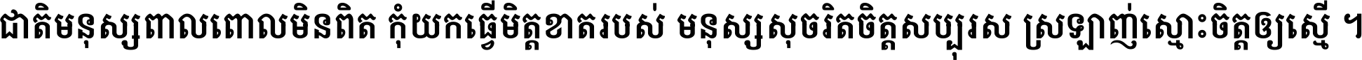 ជាតិ​មនុស្ស​ពាល​ពោល​មិន​ពិត កុំ​យក​ធ្វើ​មិត្ត​ខាត​របស់ មនុស្ស​សុចរិត​ចិត្ត​សប្បុរស ស្រឡាញ់​ស្មោះ​ចិត្ត​ឲ្យ​ស្មើ ។