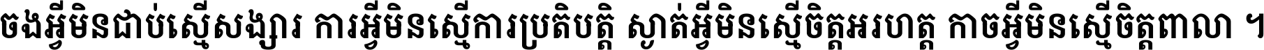 ចង​អ្វី​មិន​ជាប់​ស្មើ​សង្សារ ការ​អ្វី​មិន​ស្មើ​ការ​ប្រតិបត្តិ ស្ងាត់​អ្វី​មិន​ស្មើ​​ចិត្ត​អរហត្ត​ កាច​អ្វី​មិន​ស្មើ​ចិត្ត​ពាលា ។