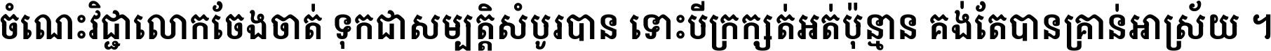 ចំណេះ​វិជ្ជា​លោក​ចែង​ចាត់ ទុក​ជា​សម្បត្តិ​សំបូរ​បាន ទោះ​បី​ក្រក្សត់​អត់​ប៉ុន្មាន គង់​តែ​បាន​គ្រាន់​អាស្រ័យ ។