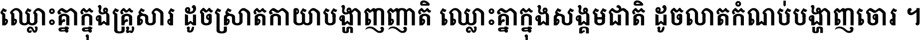 ឈ្លោះ​គ្នា​ក្នុង​គ្រួសារ ដូច​ស្រាត​កាយា​បង្ហាញ​ញាតិ ឈ្លោះគ្នាក្នុង​សង្គមជាតិ ដូច​លាត​កំណប់​បង្ហាញ​ចោរ ។