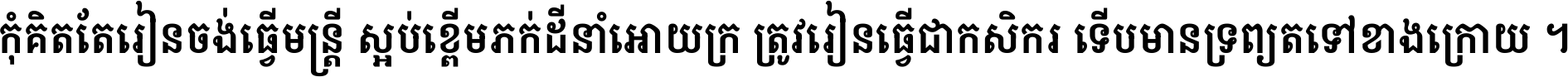 កុំ​គិត​តែ​រៀន​ចង់ធ្វើ​មន្ត្រី ស្អប់​ខ្ពើម​ភក់ដី​នាំអោយ​ក្រ ត្រូវ​រៀន​ធ្វើ​ជា​កសិករ ទើប​មានទ្រព្យ​ត​ទៅ​ខាង​ក្រោយ ។