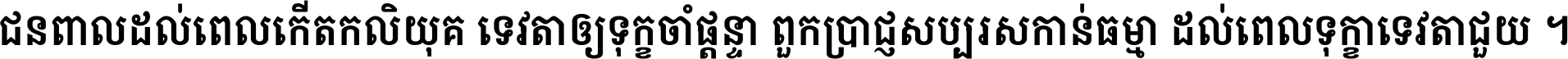 ជនពាល​ដល់​ពេល​កើត​កលិយុគ ទេវតា​ឲ្យ​ទុក្ខ​ចាំ​ផ្ដន្ទា ពួក​ប្រាជ្ញ​សប្បរស​កាន់​ធម្មា ដល់​ពេល​ទុក្ខា​ទេវតា​ជួយ ។