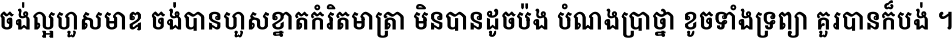 ចង់​ល្អ​ហួស​មាឌ ចង់​បាន​ហួស​ខ្នាត​កំរិត​មាត្រា មិន​បាន​ដូច​ប៉ង បំណង​ប្រាថ្នា ខូច​ទាំងទ្រព្យា គួរ​បាន​ក៏បង់ ។