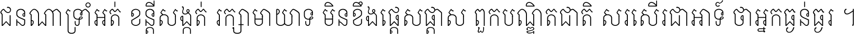 ជនណា​ទ្រាំអត់ ខន្តី​សង្កត់ រក្សា​មាយាទ មិន​ខឹង​ផ្ដេសផ្ដាស ពួក​បណ្ឌិតជាតិ សរសើរ​ជា​អាទ៍ ថា​អ្នក​ធ្ងន់​ធ្ងរ ។