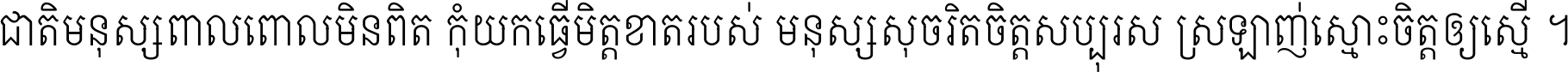ជាតិ​មនុស្ស​ពាល​ពោល​មិន​ពិត កុំ​យក​ធ្វើ​មិត្ត​ខាត​របស់ មនុស្ស​សុចរិត​ចិត្ត​សប្បុរស ស្រឡាញ់​ស្មោះ​ចិត្ត​ឲ្យ​ស្មើ ។