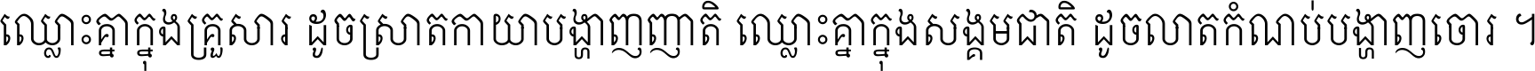 ឈ្លោះ​គ្នា​ក្នុង​គ្រួសារ ដូច​ស្រាត​កាយា​បង្ហាញ​ញាតិ ឈ្លោះគ្នាក្នុង​សង្គមជាតិ ដូច​លាត​កំណប់​បង្ហាញ​ចោរ ។