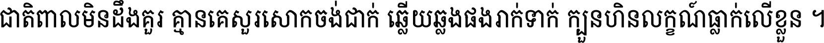 ជនពាល​ដល់​ពេល​កើត​កលិយុគ ទេវតា​ឲ្យ​ទុក្ខ​ចាំ​ផ្ដន្ទា ពួក​ប្រាជ្ញ​សប្បរស​កាន់​ធម្មា ដល់​ពេល​ទុក្ខា​ទេវតា​ជួយ ។