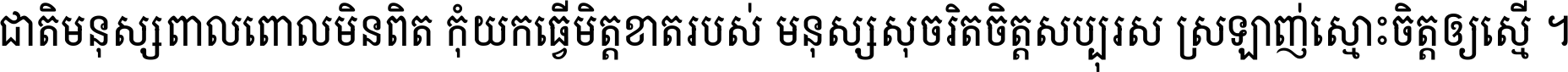 ជាតិ​មនុស្ស​ពាល​ពោល​មិន​ពិត កុំ​យក​ធ្វើ​មិត្ត​ខាត​របស់ មនុស្ស​សុចរិត​ចិត្ត​សប្បុរស ស្រឡាញ់​ស្មោះ​ចិត្ត​ឲ្យ​ស្មើ ។