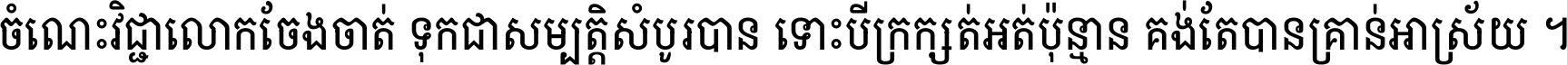ចំណេះ​វិជ្ជា​លោក​ចែង​ចាត់ ទុក​ជា​សម្បត្តិ​សំបូរ​បាន ទោះ​បី​ក្រក្សត់​អត់​ប៉ុន្មាន គង់​តែ​បាន​គ្រាន់​អាស្រ័យ ។