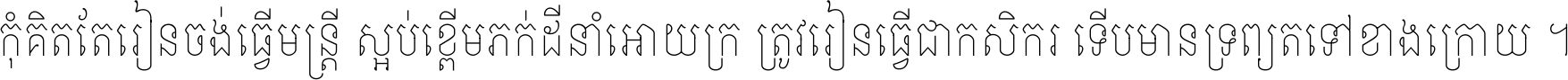 កុំ​គិត​តែ​រៀន​ចង់ធ្វើ​មន្ត្រី ស្អប់​ខ្ពើម​ភក់ដី​នាំអោយ​ក្រ ត្រូវ​រៀន​ធ្វើ​ជា​កសិករ ទើប​មានទ្រព្យ​ត​ទៅ​ខាង​ក្រោយ ។