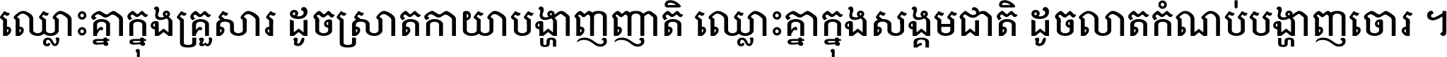 ឈ្លោះ​គ្នា​ក្នុង​គ្រួសារ ដូច​ស្រាត​កាយា​បង្ហាញ​ញាតិ ឈ្លោះគ្នាក្នុង​សង្គមជាតិ ដូច​លាត​កំណប់​បង្ហាញ​ចោរ ។