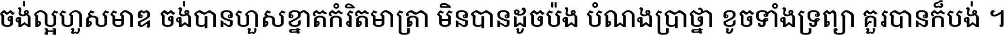ចង់​ល្អ​ហួស​មាឌ ចង់​បាន​ហួស​ខ្នាត​កំរិត​មាត្រា មិន​បាន​ដូច​ប៉ង បំណង​ប្រាថ្នា ខូច​ទាំងទ្រព្យា គួរ​បាន​ក៏បង់ ។