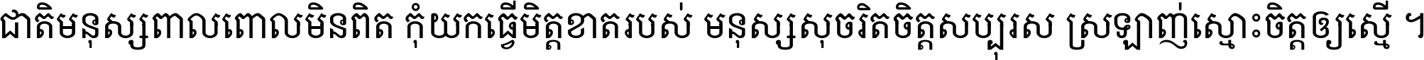 ជាតិ​មនុស្ស​ពាល​ពោល​មិន​ពិត កុំ​យក​ធ្វើ​មិត្ត​ខាត​របស់ មនុស្ស​សុចរិត​ចិត្ត​សប្បុរស ស្រឡាញ់​ស្មោះ​ចិត្ត​ឲ្យ​ស្មើ ។