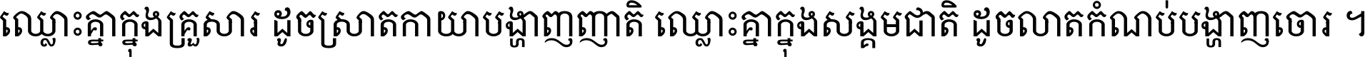 ឈ្លោះ​គ្នា​ក្នុង​គ្រួសារ ដូច​ស្រាត​កាយា​បង្ហាញ​ញាតិ ឈ្លោះគ្នាក្នុង​សង្គមជាតិ ដូច​លាត​កំណប់​បង្ហាញ​ចោរ ។