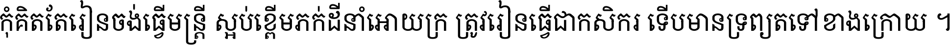 កុំ​គិត​តែ​រៀន​ចង់ធ្វើ​មន្ត្រី ស្អប់​ខ្ពើម​ភក់ដី​នាំអោយ​ក្រ ត្រូវ​រៀន​ធ្វើ​ជា​កសិករ ទើប​មានទ្រព្យ​ត​ទៅ​ខាង​ក្រោយ ។