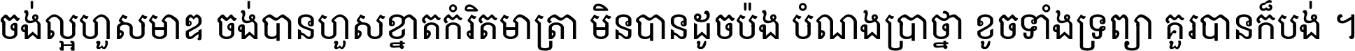 ចង់​ល្អ​ហួស​មាឌ ចង់​បាន​ហួស​ខ្នាត​កំរិត​មាត្រា មិន​បាន​ដូច​ប៉ង បំណង​ប្រាថ្នា ខូច​ទាំងទ្រព្យា គួរ​បាន​ក៏បង់ ។
