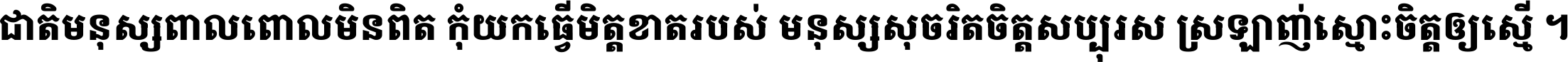 ជាតិ​មនុស្ស​ពាល​ពោល​មិន​ពិត កុំ​យក​ធ្វើ​មិត្ត​ខាត​របស់ មនុស្ស​សុចរិត​ចិត្ត​សប្បុរស ស្រឡាញ់​ស្មោះ​ចិត្ត​ឲ្យ​ស្មើ ។