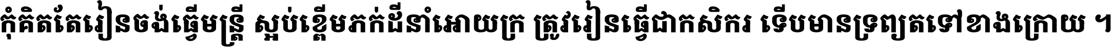 កុំ​គិត​តែ​រៀន​ចង់ធ្វើ​មន្ត្រី ស្អប់​ខ្ពើម​ភក់ដី​នាំអោយ​ក្រ ត្រូវ​រៀន​ធ្វើ​ជា​កសិករ ទើប​មានទ្រព្យ​ត​ទៅ​ខាង​ក្រោយ ។