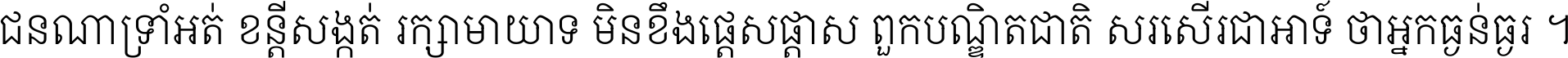 ជនណា​ទ្រាំអត់ ខន្តី​សង្កត់ រក្សា​មាយាទ មិន​ខឹង​ផ្ដេសផ្ដាស ពួក​បណ្ឌិតជាតិ សរសើរ​ជា​អាទ៍ ថា​អ្នក​ធ្ងន់​ធ្ងរ ។