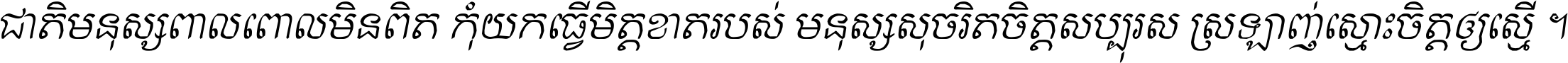 ជាតិ​មនុស្ស​ពាល​ពោល​មិន​ពិត កុំ​យក​ធ្វើ​មិត្ត​ខាត​របស់ មនុស្ស​សុចរិត​ចិត្ត​សប្បុរស ស្រឡាញ់​ស្មោះ​ចិត្ត​ឲ្យ​ស្មើ ។