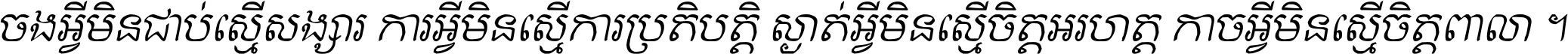 ចង​អ្វី​មិន​ជាប់​ស្មើ​សង្សារ ការ​អ្វី​មិន​ស្មើ​ការ​ប្រតិបត្តិ ស្ងាត់​អ្វី​មិន​ស្មើ​​ចិត្ត​អរហត្ត​ កាច​អ្វី​មិន​ស្មើ​ចិត្ត​ពាលា ។