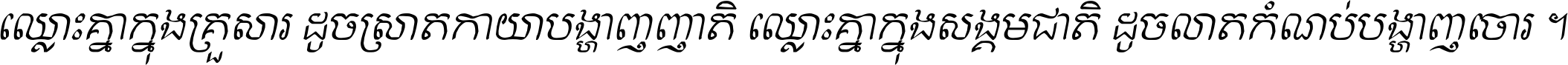 ឈ្លោះ​គ្នា​ក្នុង​គ្រួសារ ដូច​ស្រាត​កាយា​បង្ហាញ​ញាតិ ឈ្លោះគ្នាក្នុង​សង្គមជាតិ ដូច​លាត​កំណប់​បង្ហាញ​ចោរ ។