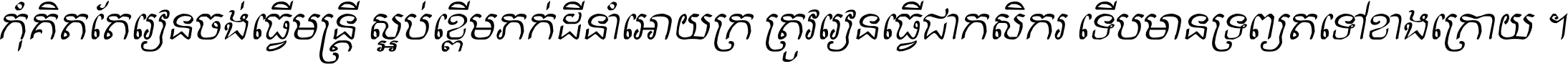 កុំ​គិត​តែ​រៀន​ចង់ធ្វើ​មន្ត្រី ស្អប់​ខ្ពើម​ភក់ដី​នាំអោយ​ក្រ ត្រូវ​រៀន​ធ្វើ​ជា​កសិករ ទើប​មានទ្រព្យ​ត​ទៅ​ខាង​ក្រោយ ។