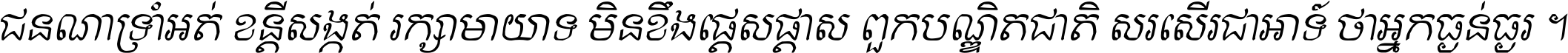 ជនណា​ទ្រាំអត់ ខន្តី​សង្កត់ រក្សា​មាយាទ មិន​ខឹង​ផ្ដេសផ្ដាស ពួក​បណ្ឌិតជាតិ សរសើរ​ជា​អាទ៍ ថា​អ្នក​ធ្ងន់​ធ្ងរ ។