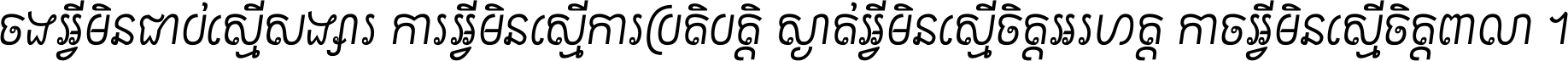 ចង​អ្វី​មិន​ជាប់​ស្មើ​សង្សារ ការ​អ្វី​មិន​ស្មើ​ការ​ប្រតិបត្តិ ស្ងាត់​អ្វី​មិន​ស្មើ​​ចិត្ត​អរហត្ត​ កាច​អ្វី​មិន​ស្មើ​ចិត្ត​ពាលា ។