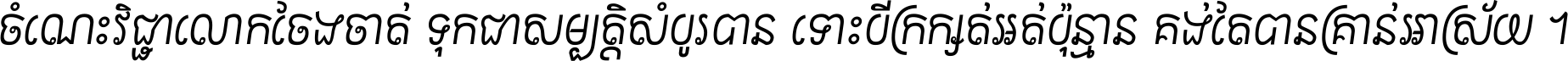 ចំណេះ​វិជ្ជា​លោក​ចែង​ចាត់ ទុក​ជា​សម្បត្តិ​សំបូរ​បាន ទោះ​បី​ក្រក្សត់​អត់​ប៉ុន្មាន គង់​តែ​បាន​គ្រាន់​អាស្រ័យ ។